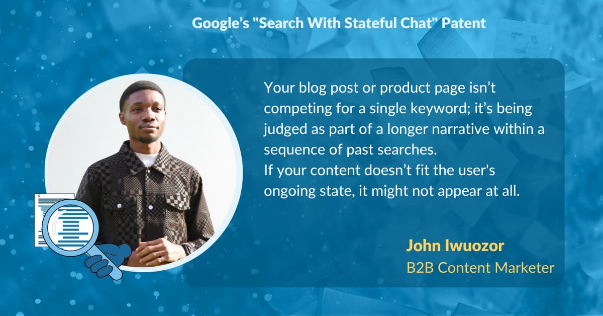 In August 2024, Google published a patent titled "Search With Stateful Chat." The patent outlines Google’s plans to bake conversational memory into search. Michael King, founder of iPullRank, was one of the first to spotlight this patent with a technical breakdown that got the industry buzzing.