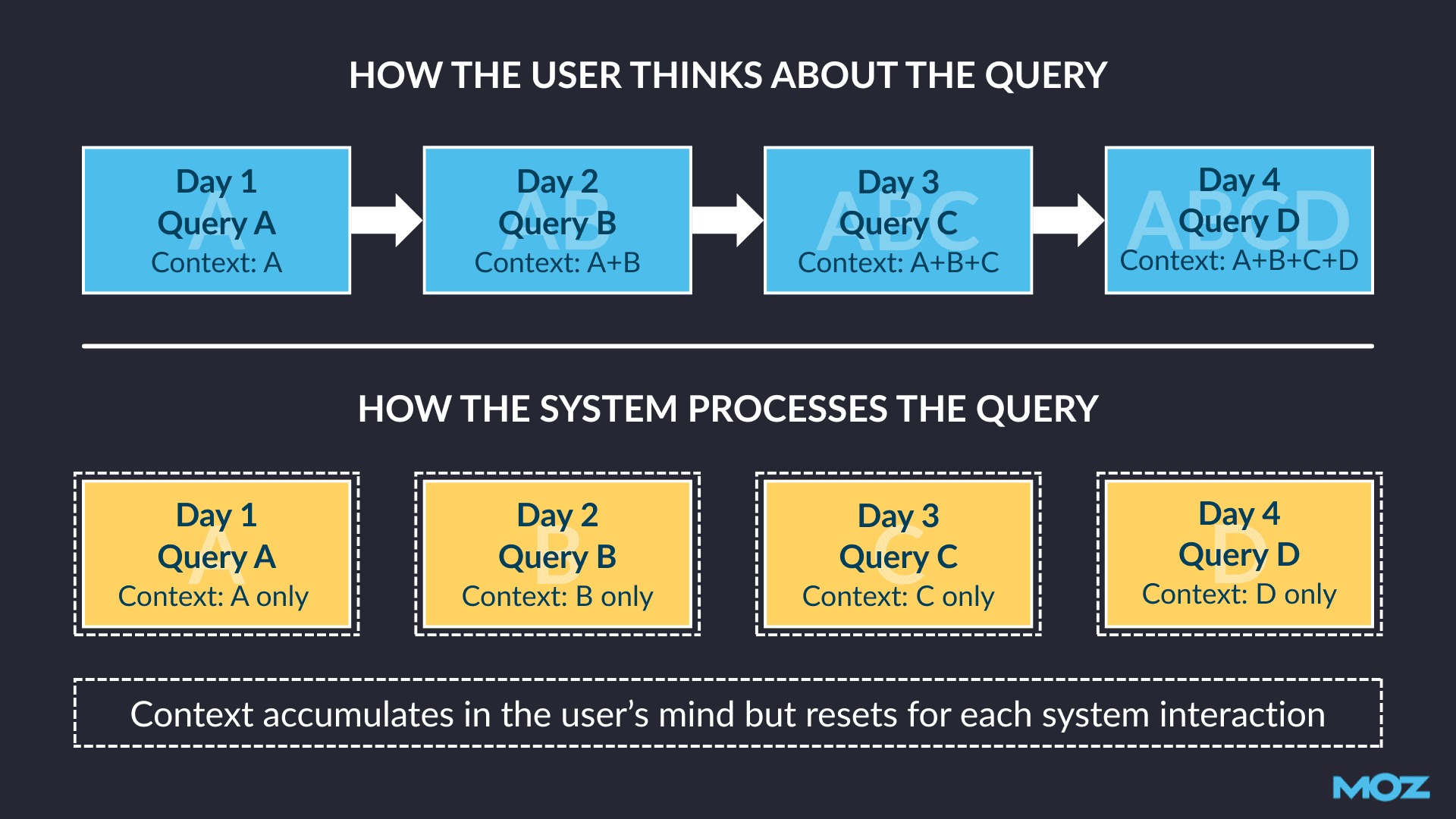 There are big implications for content. Your blog post or product page isn’t competing for a single keyword, but is judged as part of a longer narrative within a sequence of past searches, user behavior, and prior AI responses.