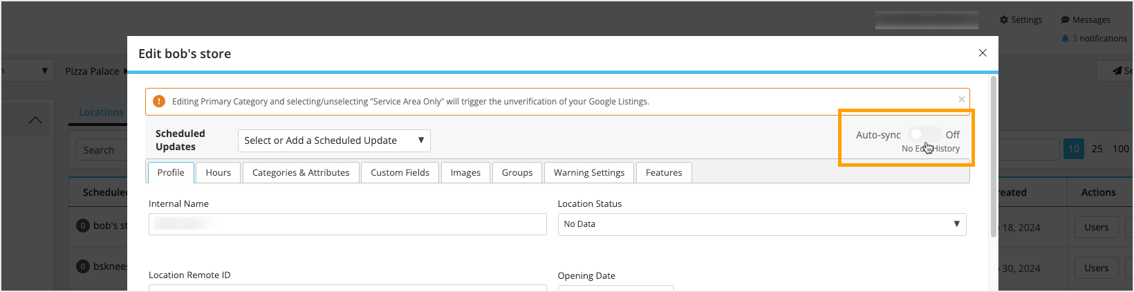 - Once you’re ready and the data is correct in Moz Local, enable Auto Sync