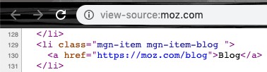 You can check how a link is coded by looking at the source code of the page. To access the source code, right click in the browser window and click View Source. An HTML link will be coded as href= as seen below.