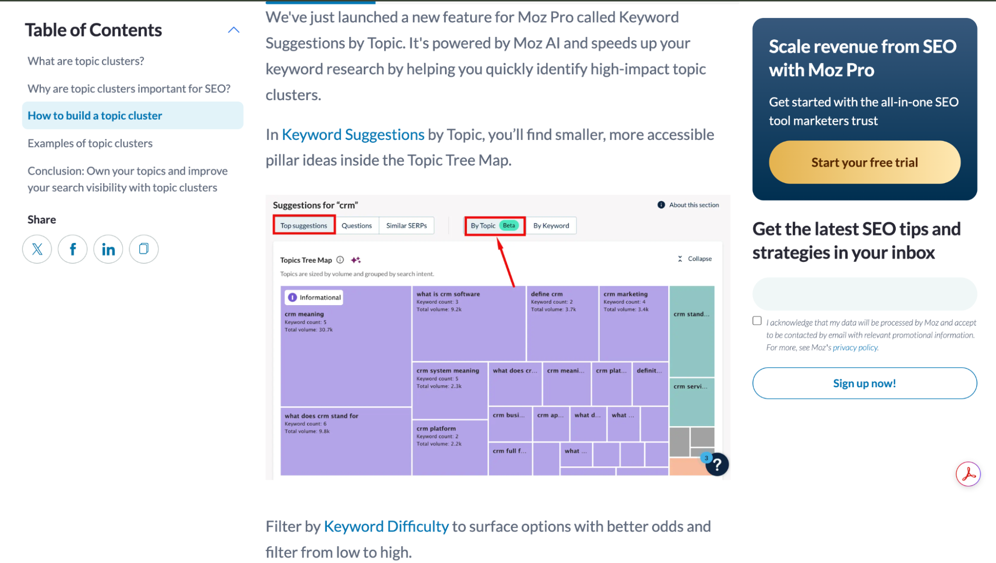 For example, when Moz launched “Keyword Suggestions by Topic,” Chima Mmeje wrote a detailed article on building topic clusters to explain how the feature worked.