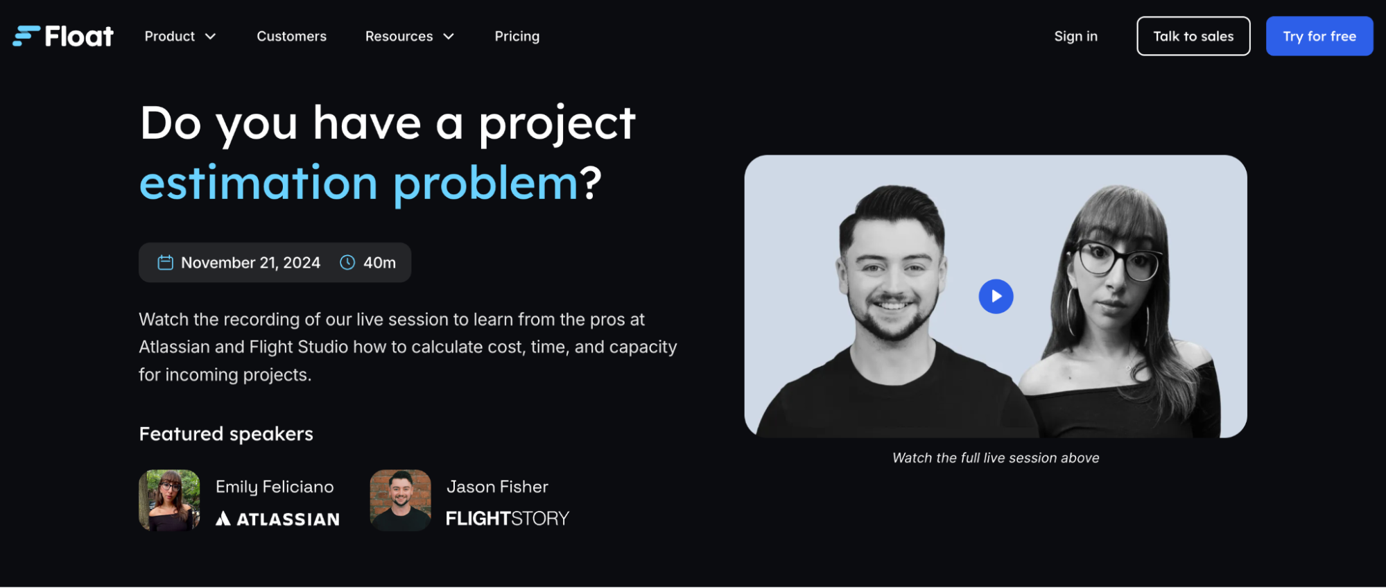 One example is their webinar on project estimation with Atlassian and FlightStory Studio. The guests shared practical strategies and templates for improving estimates and explained how Float supports that process.
