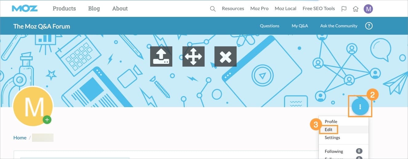 - Head to moz.com and access the Community Profile link from the dropdown on the right
