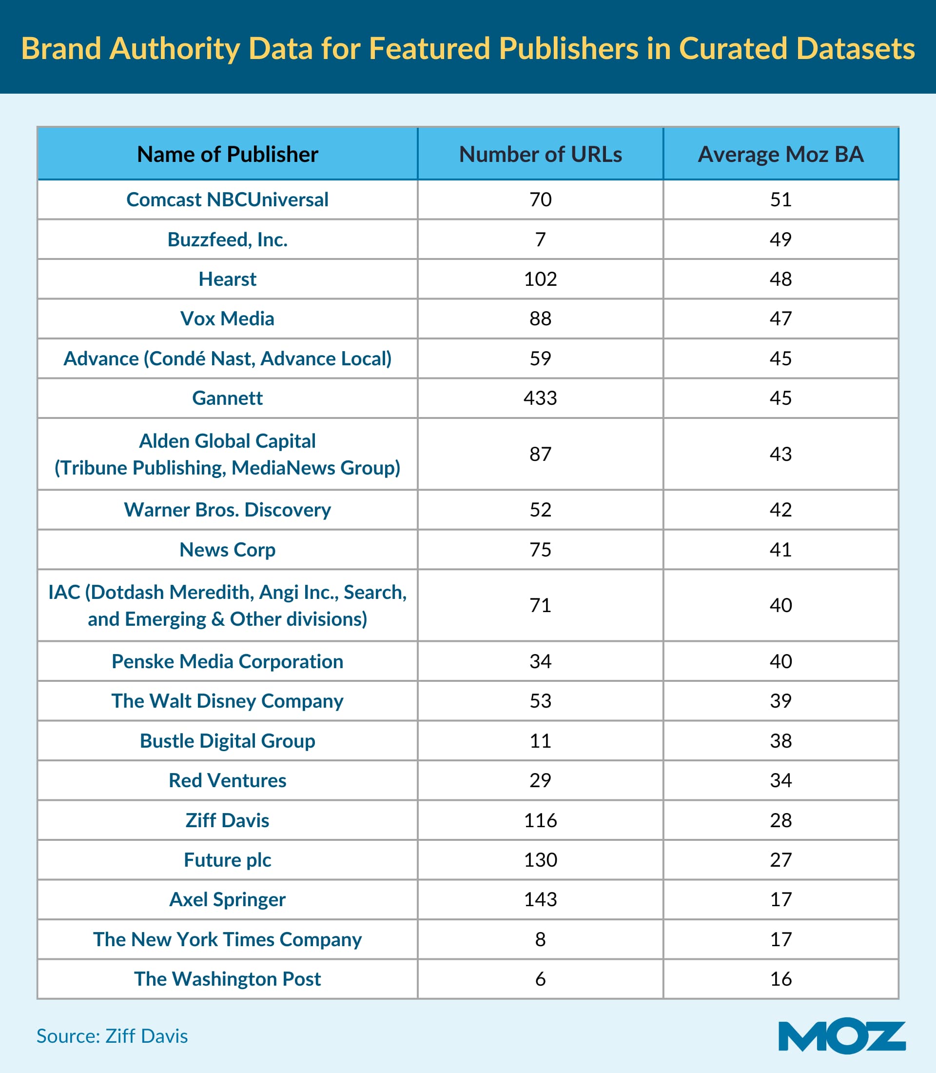 While not mentioned, most of these publishers have a higher Brand Authority than most