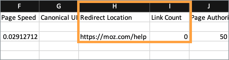 You’ll also want to take a look at the Redirect Target identified in column H.