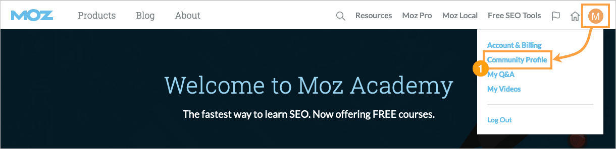 - Head to moz.com and access the Community Profile link from the dropdown on the right