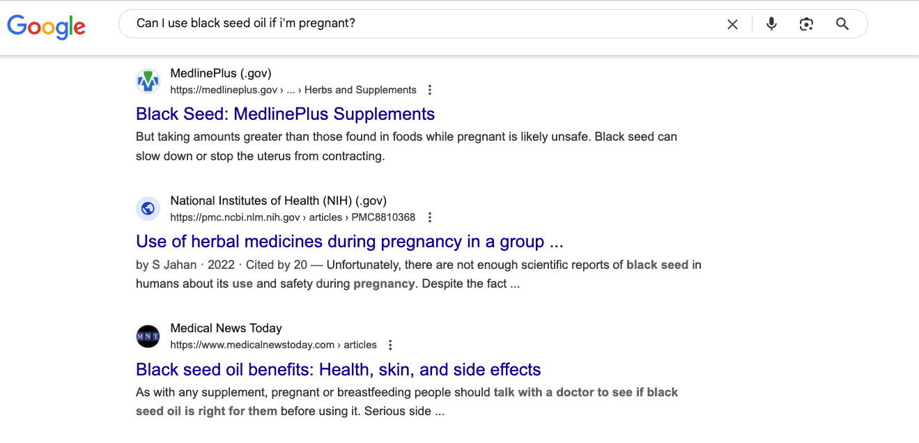 They click on Medline Plus, scroll to the section titled “Is it safe?” and eventually land on an answer buried in small text.